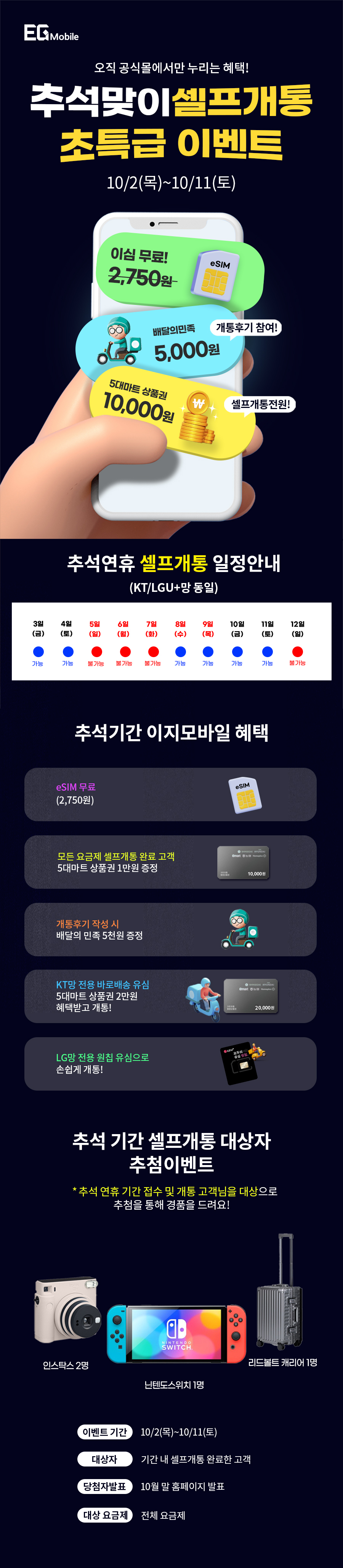 추석맞이 셀프개통 초특급 이벤트! ★당첨자 발표★